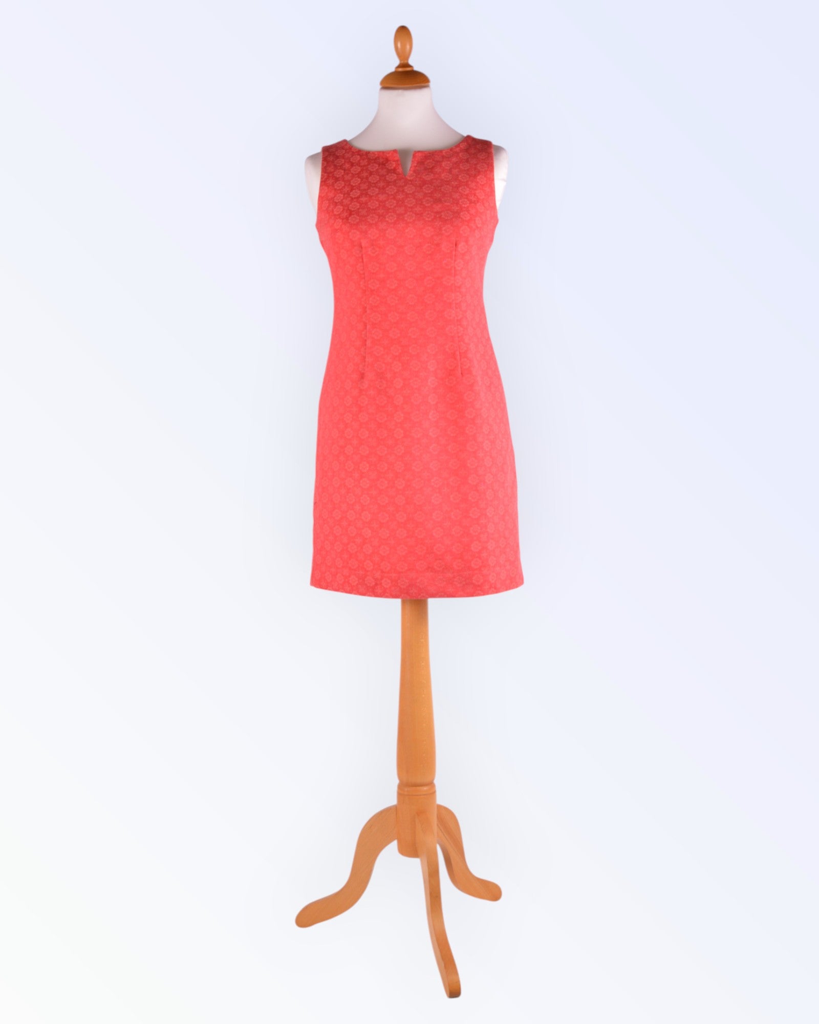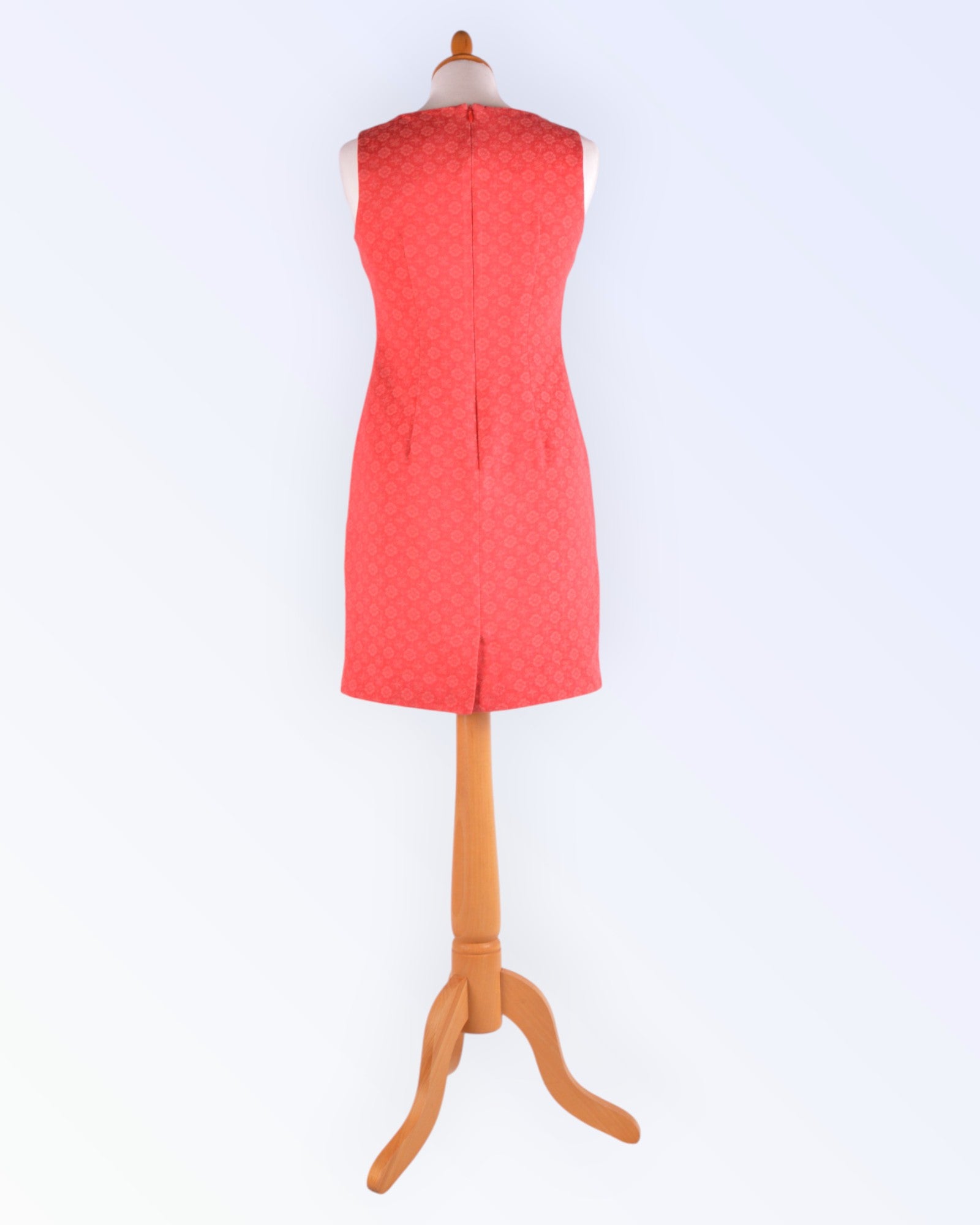 Korall-punasest žakaar-kangast pliiats-kleit. Voodriga toode.