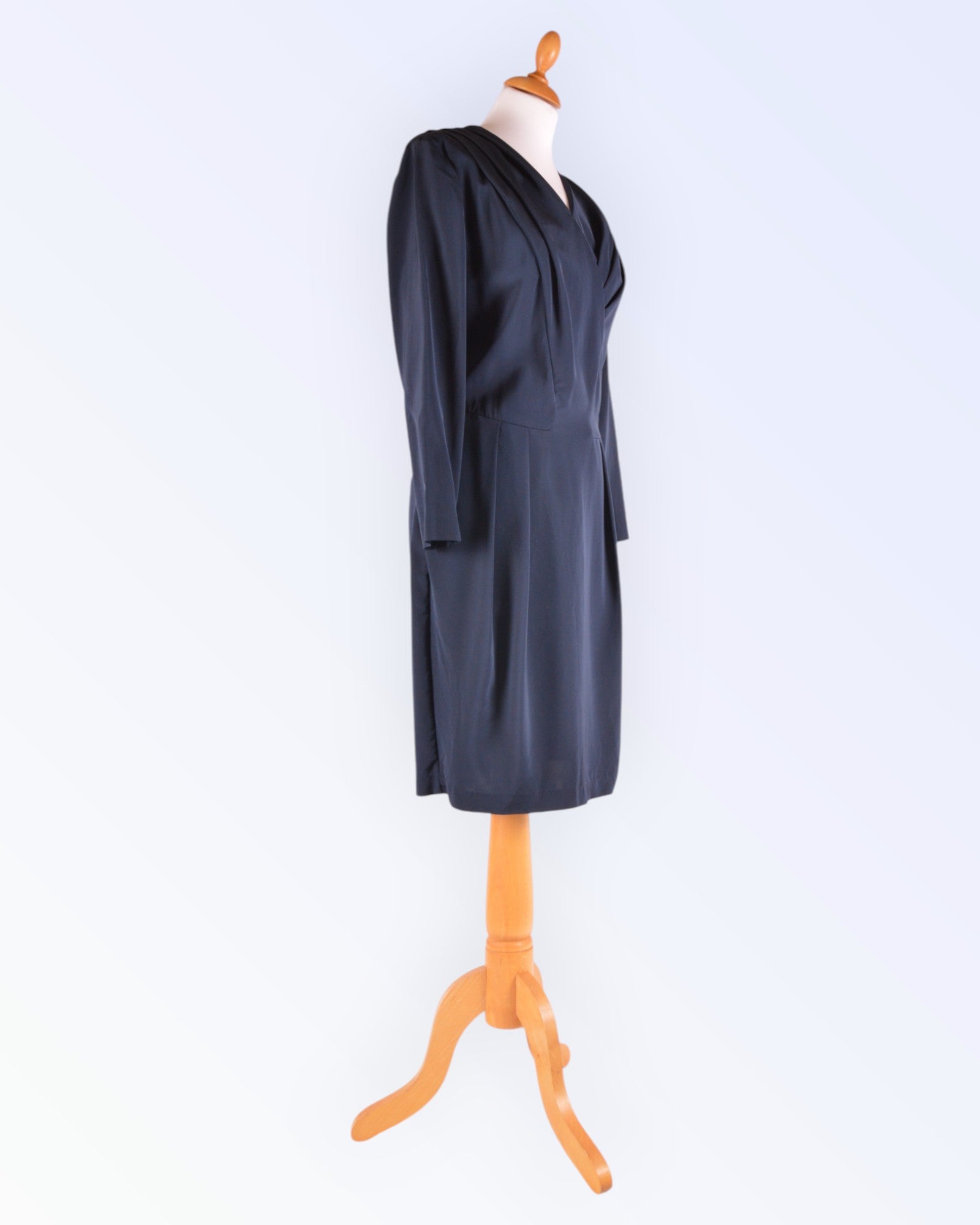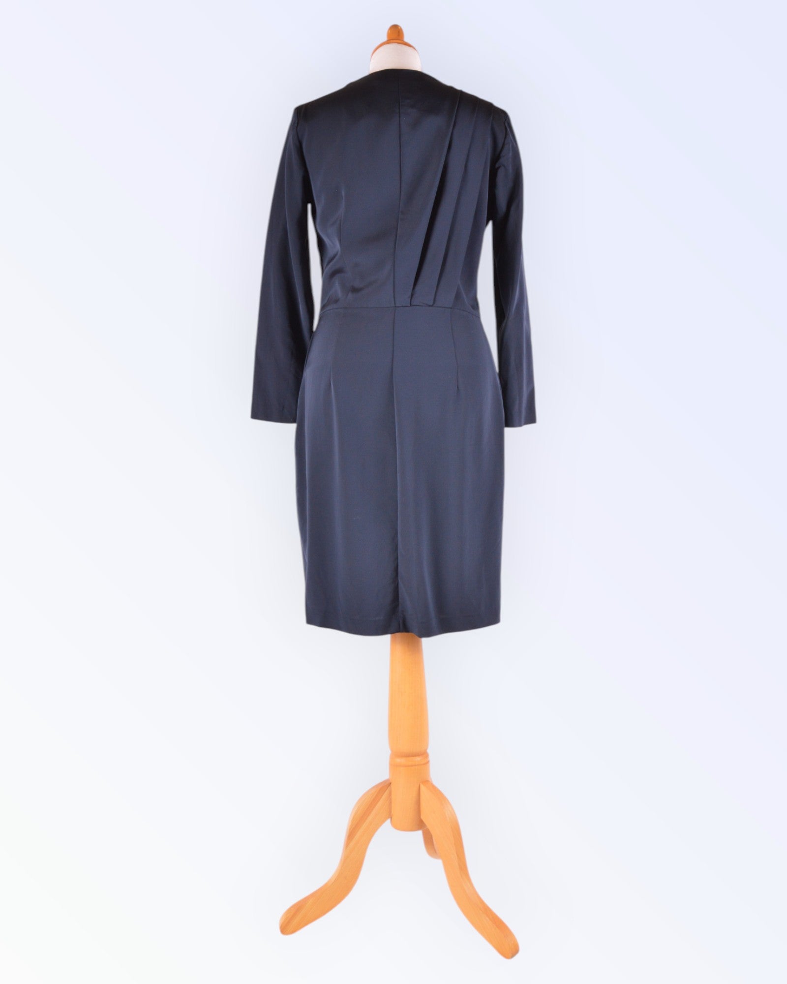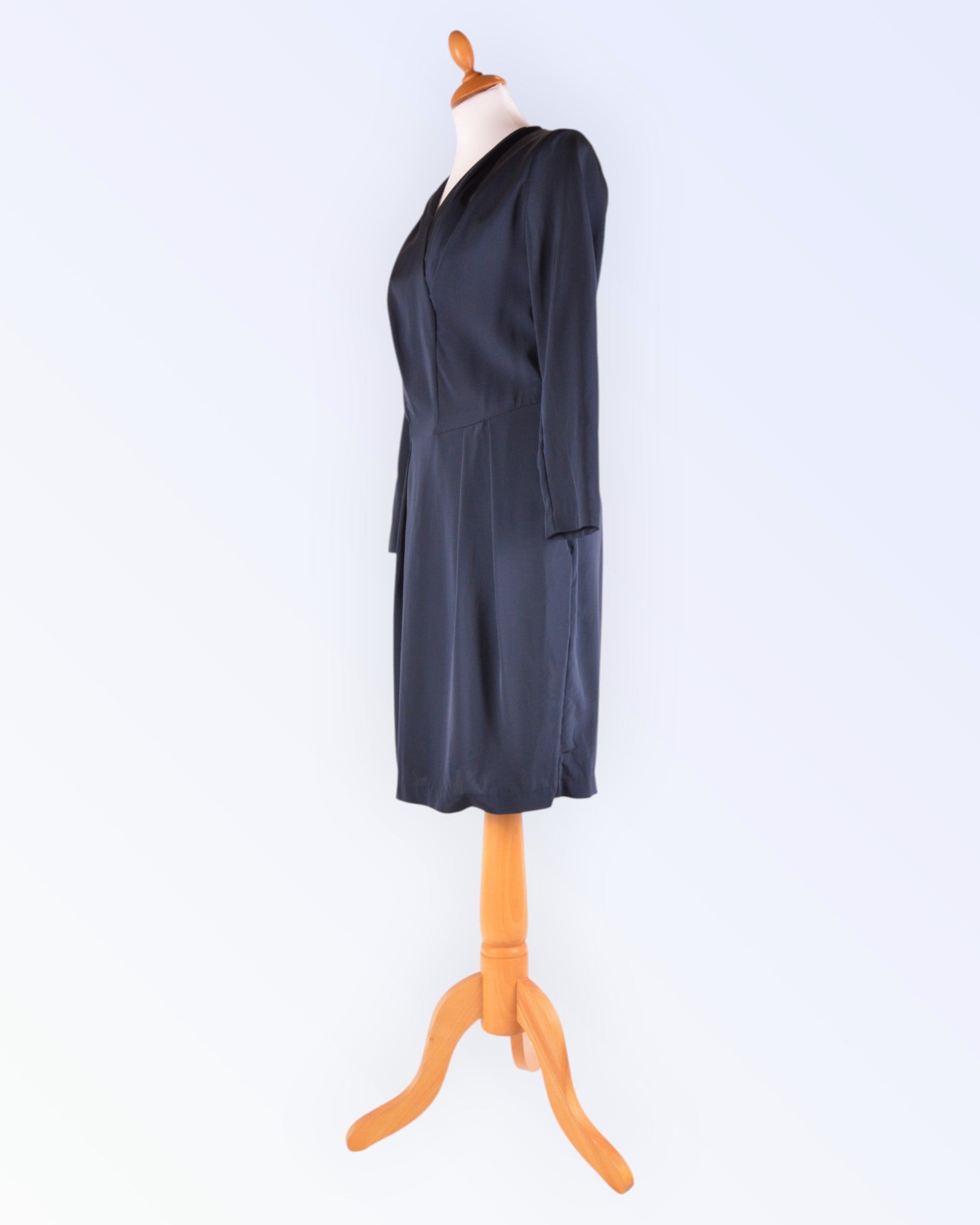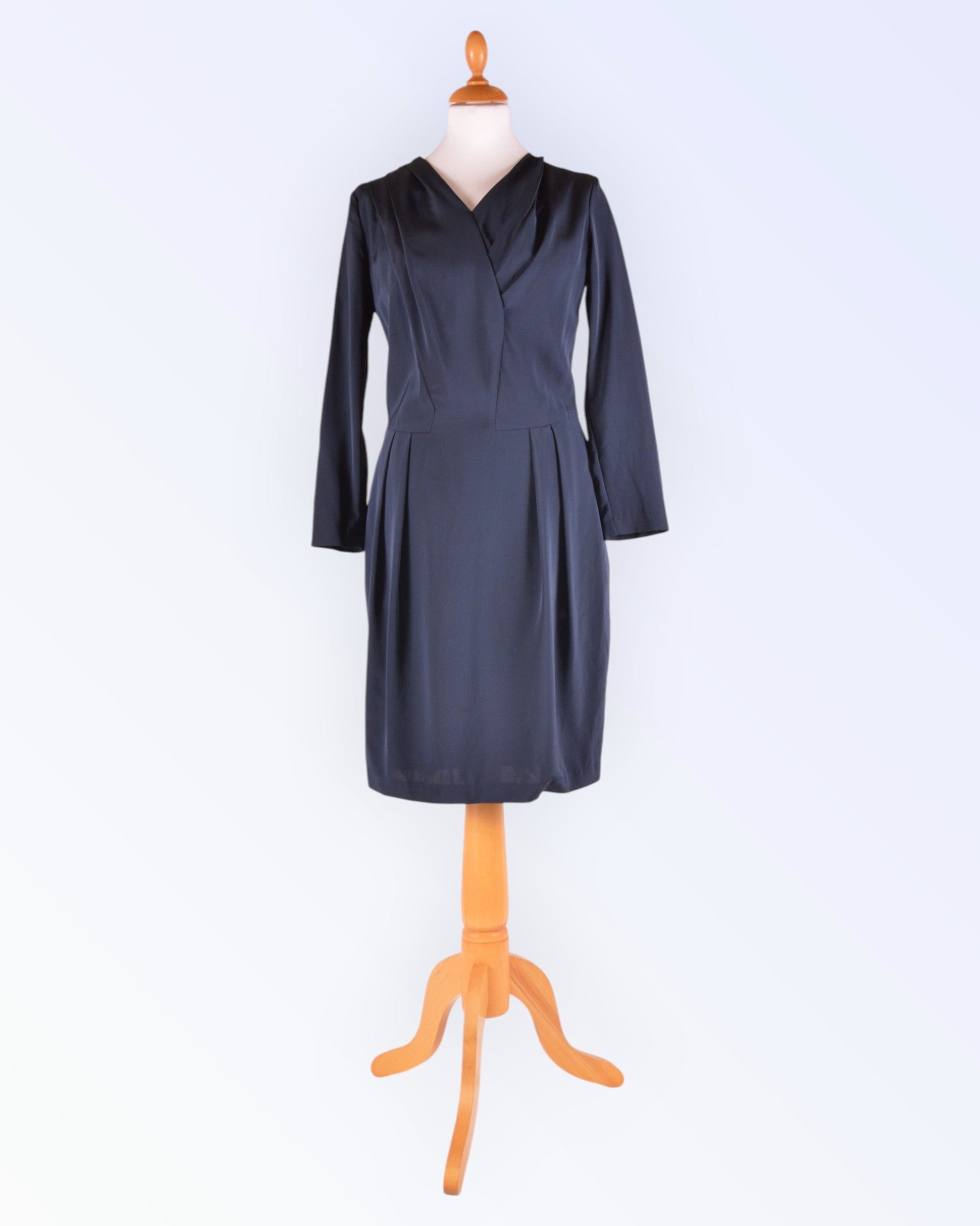Tumesinine asümmeetrillise disainiga poolpikkade varrukatega kleit. Voodrita toode.