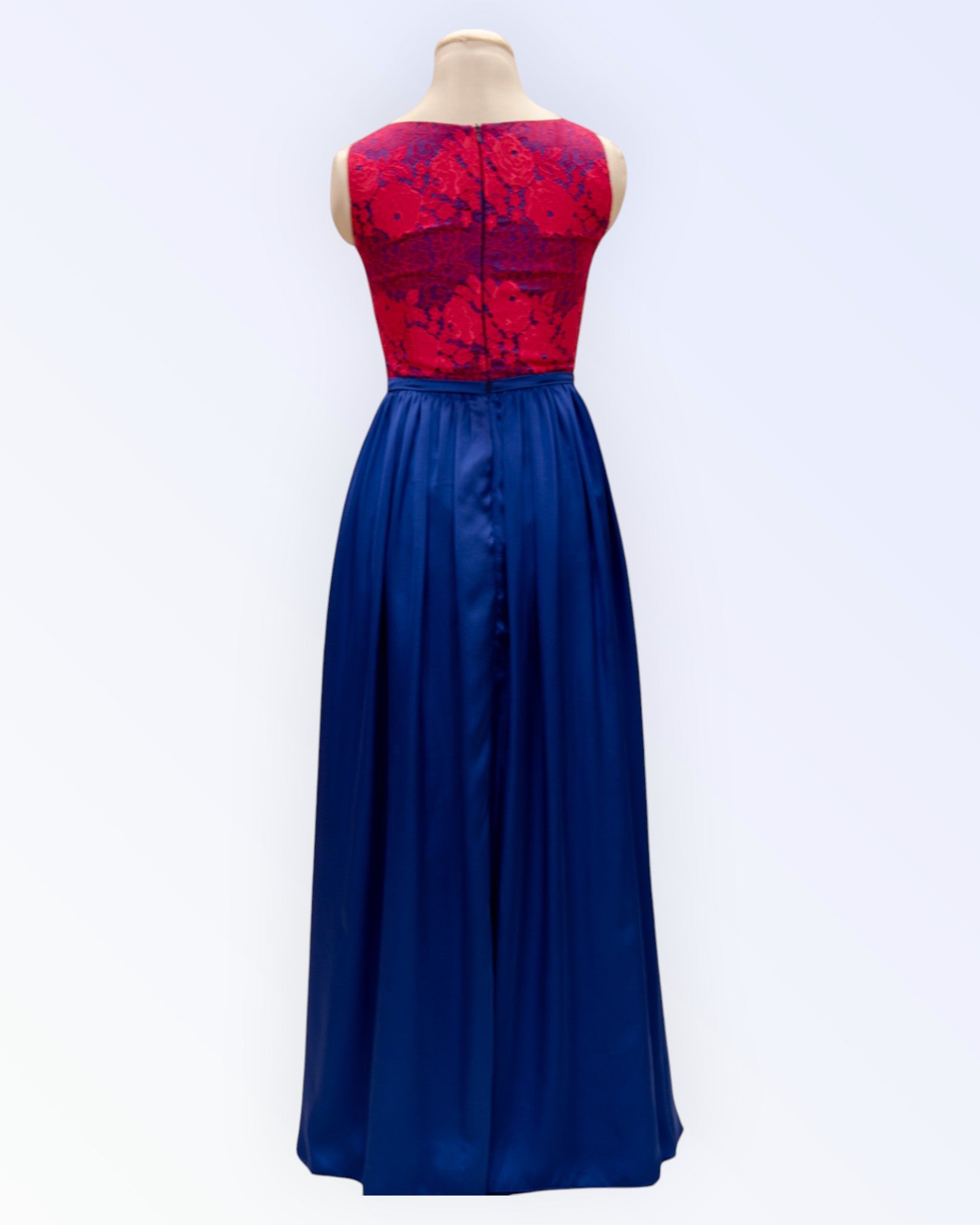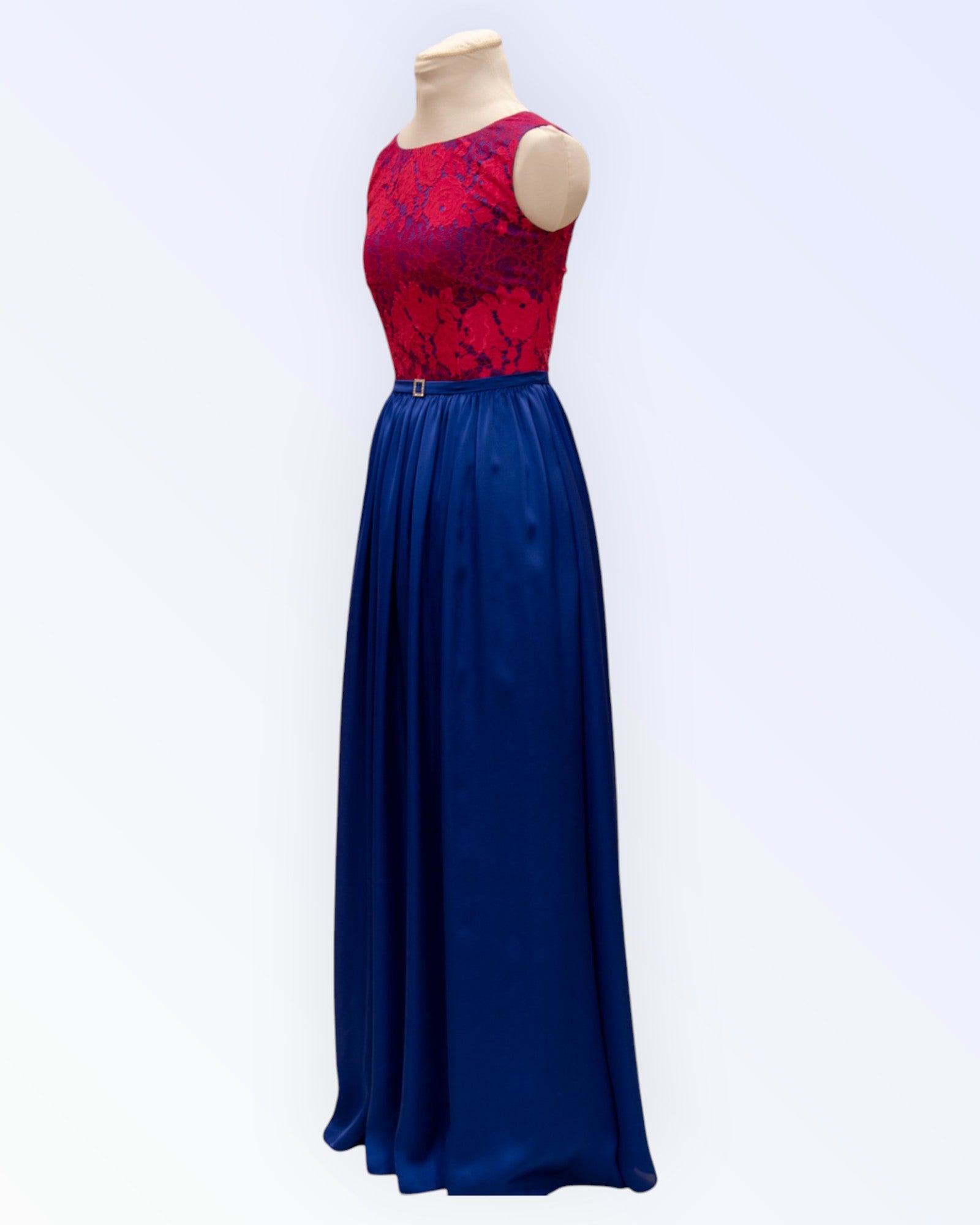 Kahevärviline pikk pidulik kleit.