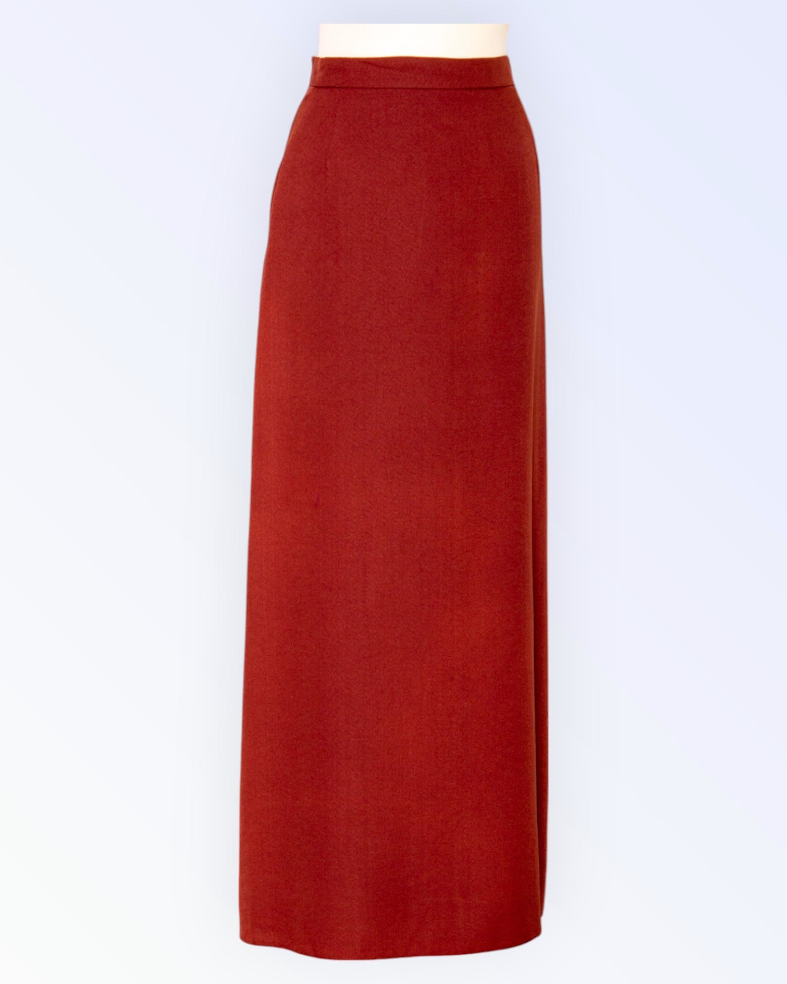 Pikk pidulik sirgelõikeline roostepruun seelik.