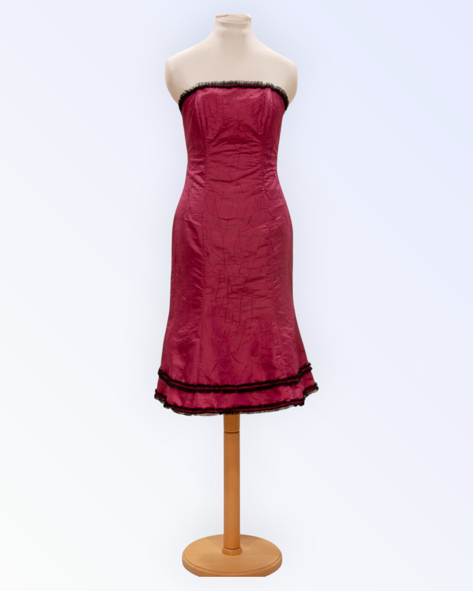 Rubiinpunane taftkleit kaunistatud mustade rüüžide ja sametpaeltega.