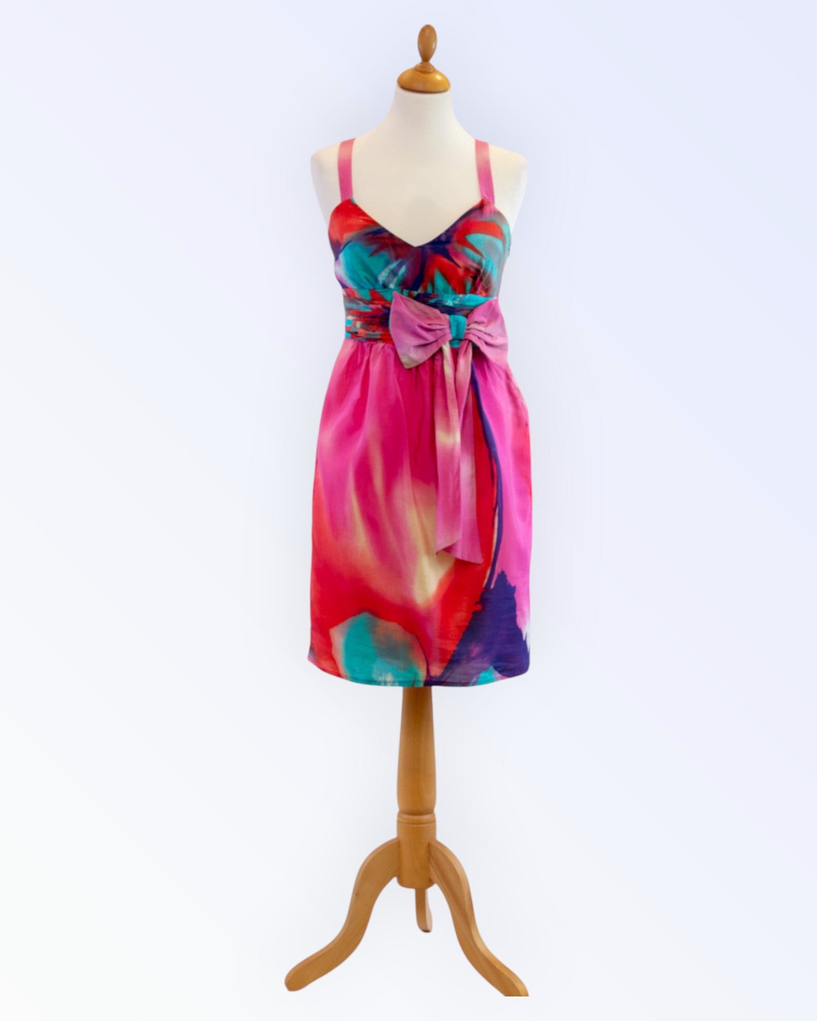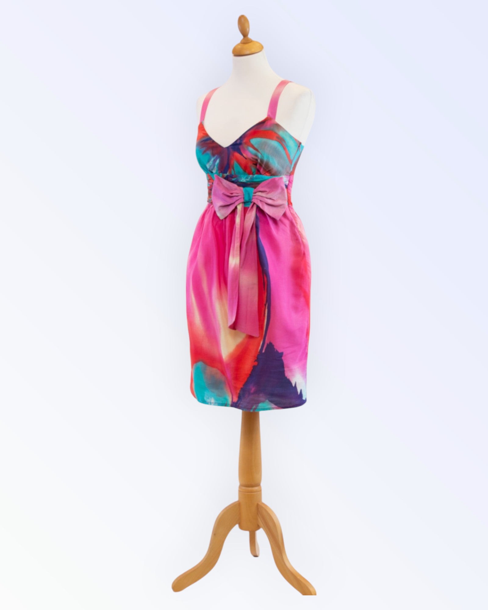 Erksavärviline suure lipsuga puuvillane suvekleit.