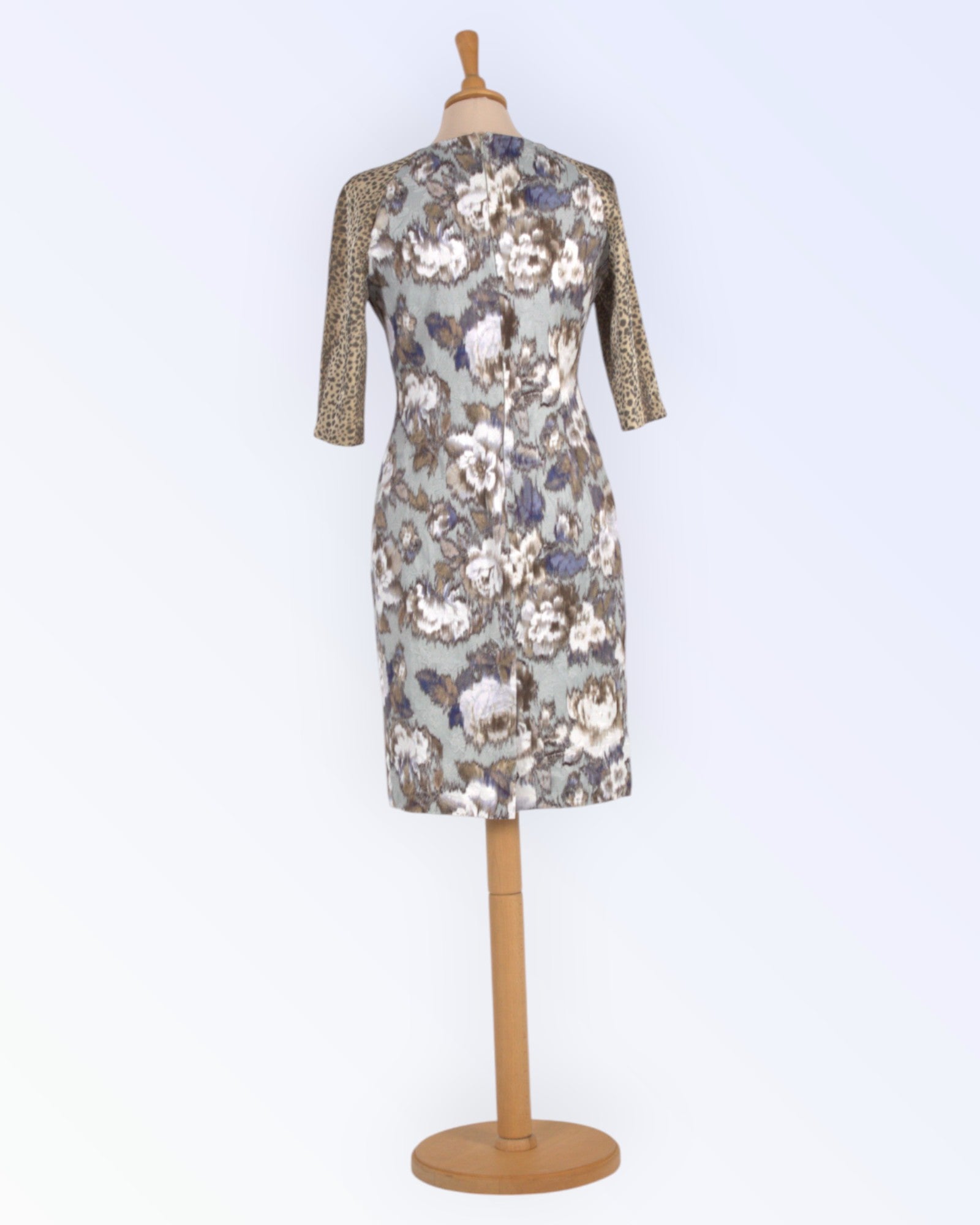 Mitmevärvilistest kangastest sirgelõikeline kleit.
