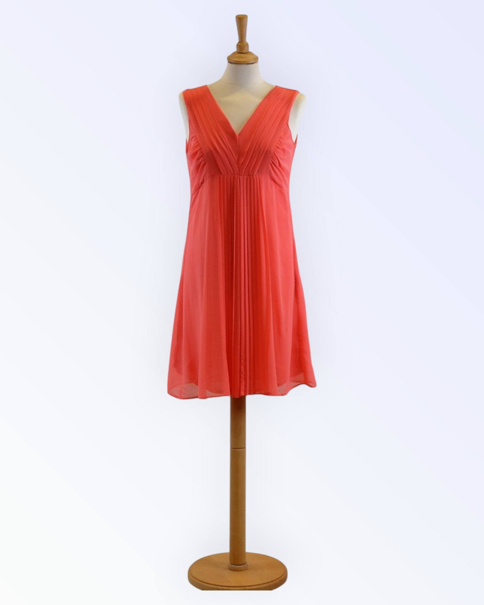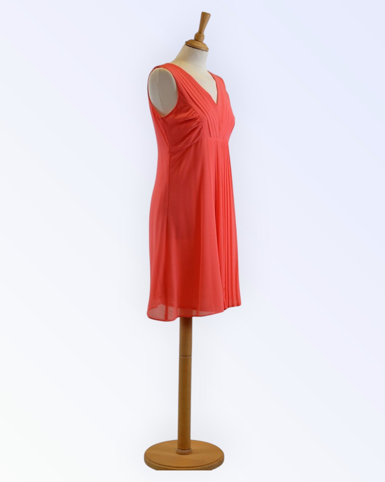 Roosa kasutatud peokleit. Erksavärviline šifoonist peokleit sobib hästi nii pruutneitsile kui ka pulmakülalisele.