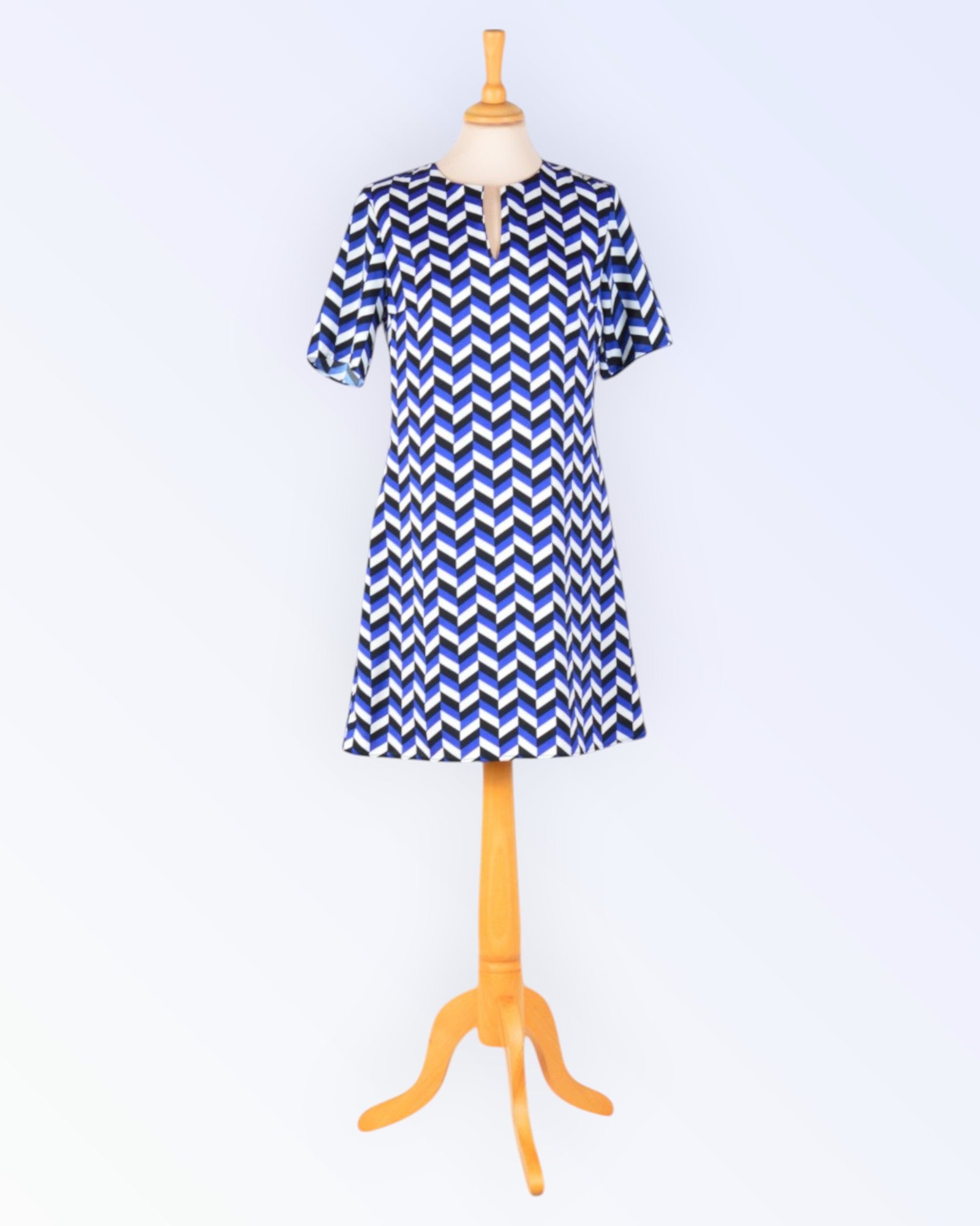 Sirgelõikeline sik-sak mustriline kleit. Voodriga toode.