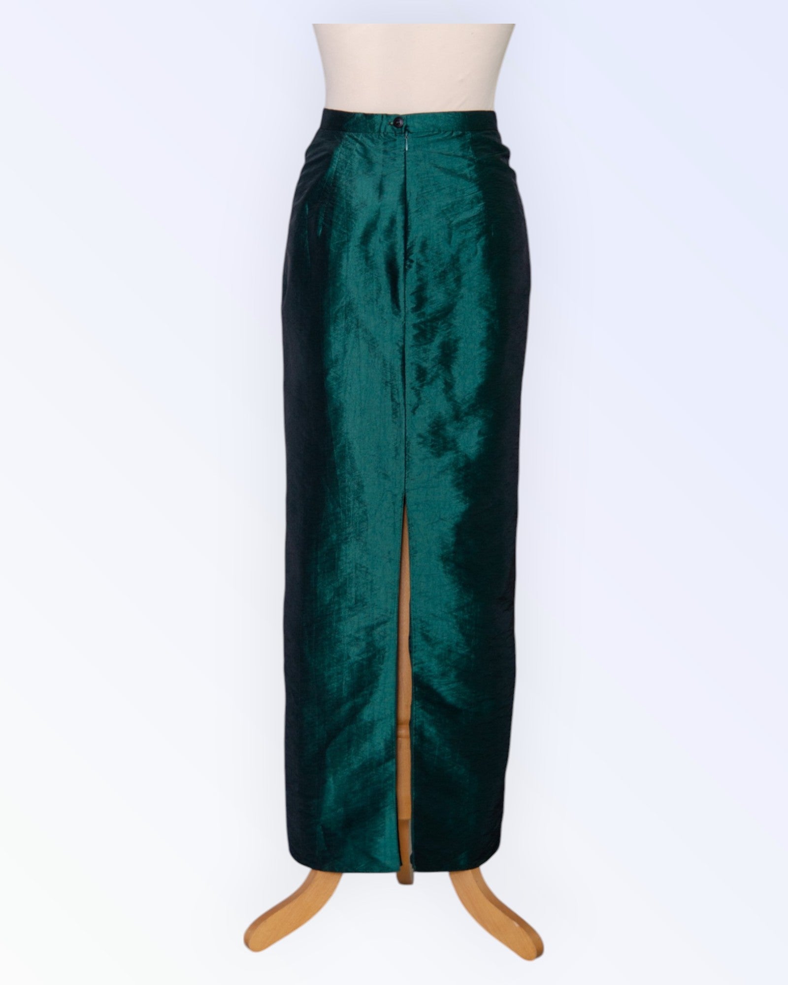 Pikk pidulik tumeroheline sirgelõikeline taftseelik.