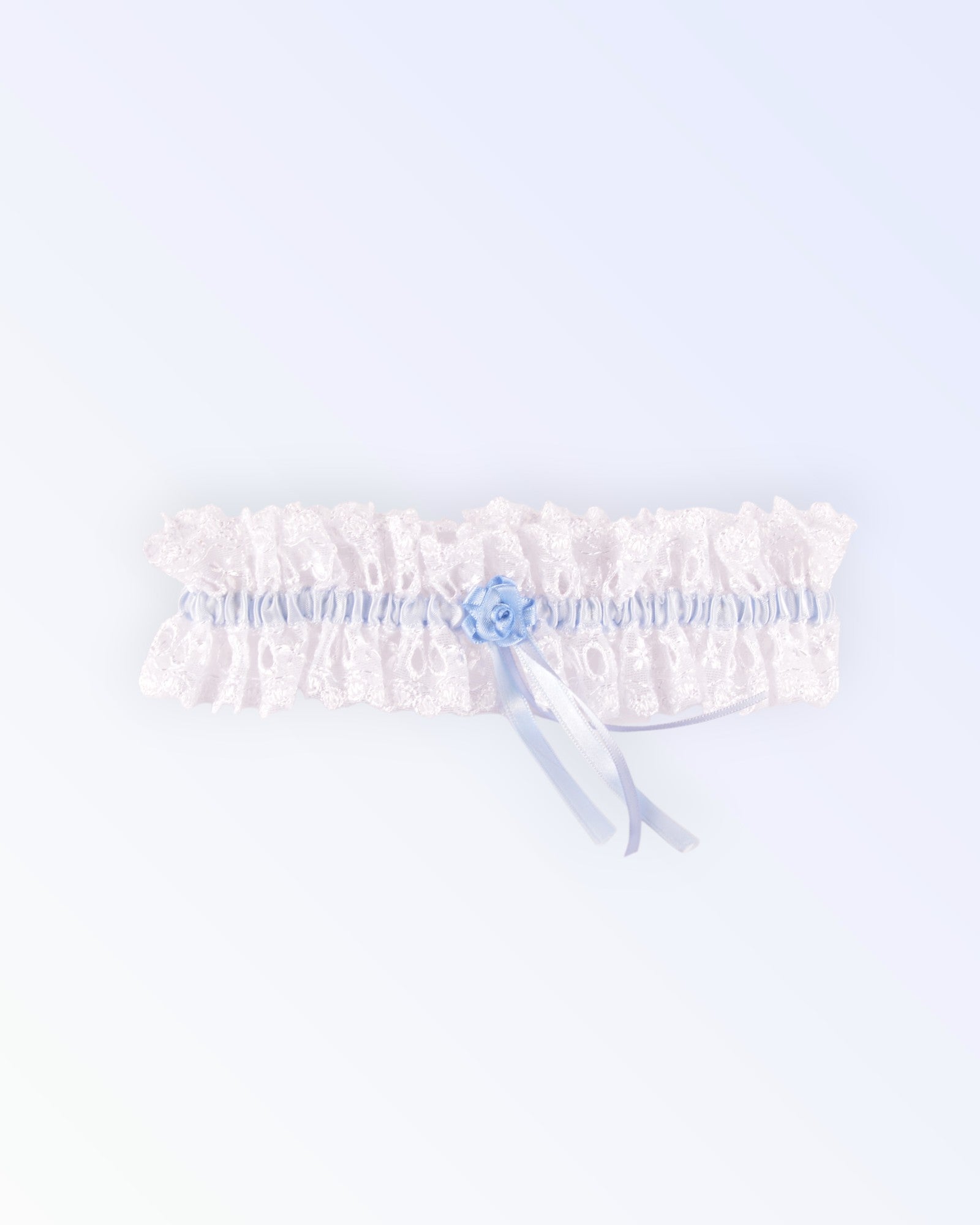 Valgest pitsist sukapael on kaunistatud helesinisest satiinpaelast käsitsi valmistatud roosi ja lintidega.